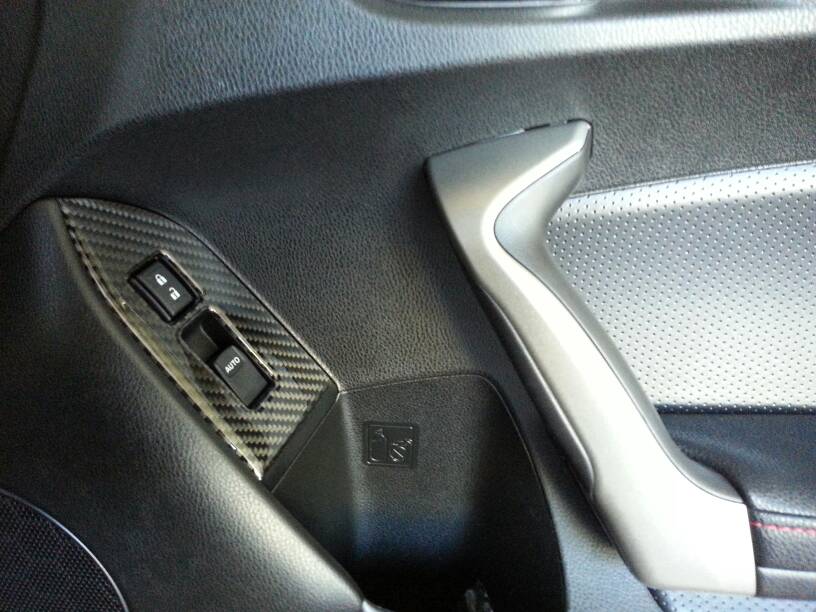 I'll look for a local dent Yoda to see what they can do. On Sunday I'll be installing Perrin crank pulley, Grimmspeed hood struts & master cylinder brace, DDMTuning 6000k bulbs, JDM padded knee panels, Eibach Pro Kit springs and blacking out my badges with some plasti-dip.