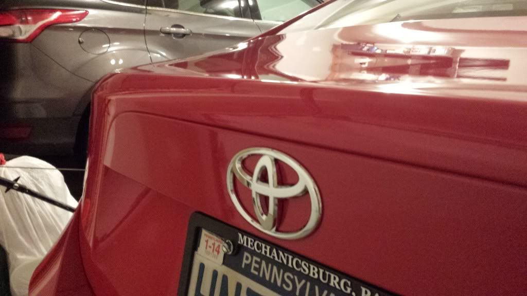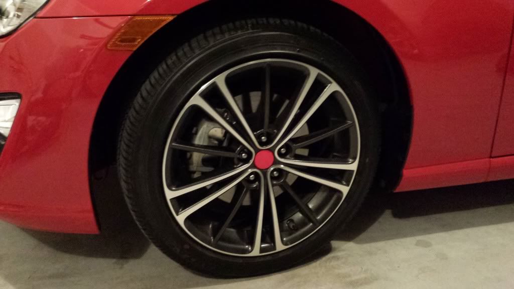 I'm not sold on what I did today. I want to get the Toyota wheel caps. Since I just rebadged the scion tags to toyota I thought it was tacky having the scion logos on the wheels. So I thought I would try the plasti dip. Was going to do black but I saw they had red and thought it might look decent. I'm not so sure. I really just want the Toyota ones. I guess this will do until then.