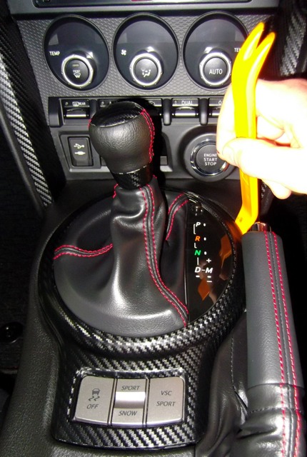 It's a bit more complicated. Remove radio surround trim Remove Gear stick surround trim remove the mat out of the centre console. remove the plastic trim underneath the kneepads Remove the USB/Starter button console piece Remove handbrake boot - reach down the side of the seat, hook your fingers under the trim and lift up, pops off easy - pull vinyl off over the handbrake. With all that stuff removed: There are two bolts under the centre console mat - remove There are four screws holding the centre console down around the gear stick - remove them. There are then two screws under the radio holding the trim pieces in, remove them. Pull the trim pieces towards the back of the car and the pieces slide out. One remove you will see that there is one screw holding the trim piece to the kneepad. Remove that screw and the kneepad and trim piece pull apart. If that is too confusing here's a DIY I did on another forum - edit the URL as this forum blocks them: www (dot) 86forums (dot) com (dot) au/index.php?/topic/484-how-to-remove-hvac-trim-pieces-for-cf-wrapping/ |