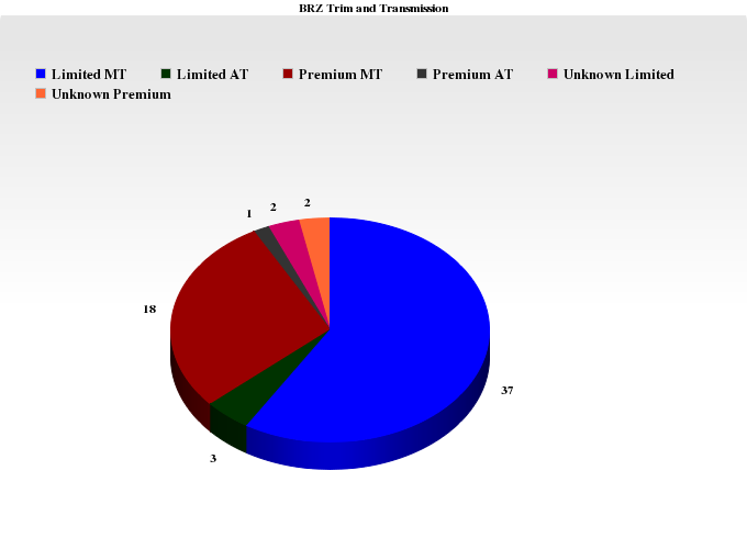 Comments: No pricing but possible markup of $1000-$3000. Also when asked about price difference between Premium vs Limited, the sales guy said about $1200. They must know the msrp then, they are just not releasing it. The dealership is getting 18 BRZ allocated to them; 2nd largest allocation in the state of Washington (as I'm told by another sales guy).