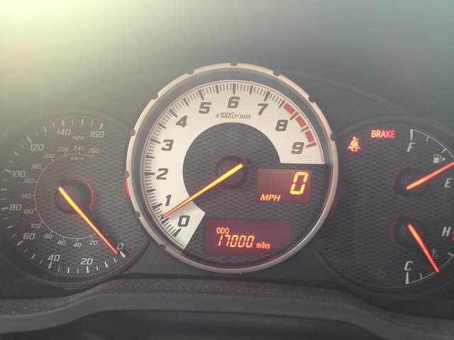 Most useless gauge in the car... Something more like the Evo gauge setup would be better. Two main gauges with the screen and auxiliary gauges in the middle; the tri-gauge setup is classic, but the speedo is unnecessarily high while small tick marks. For God's sake, 60MPH is in the bottom left quadrant!!