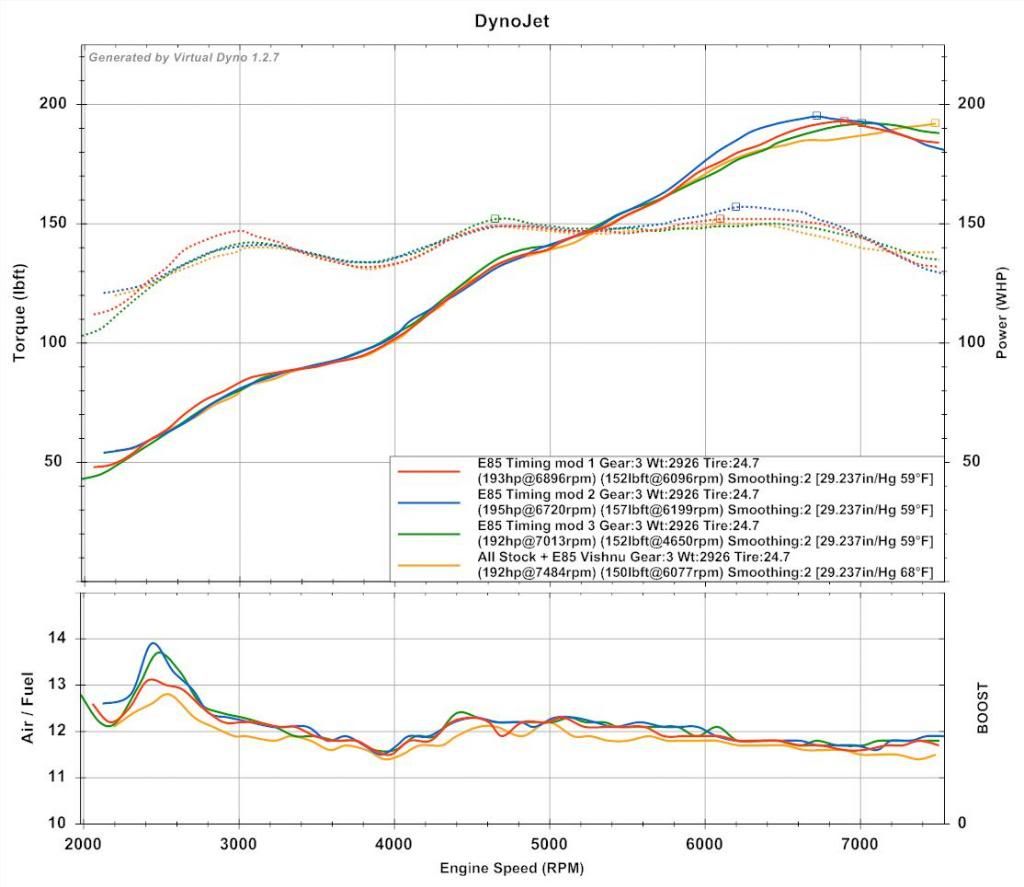 E% variability doesn't really have much to do with my last post. You can tune well beyond MBT (in NA application) with far less than e85. I suspect e40 would give enough octane to allow you to run a too aggressive (power robbing) tune without even knowing it from logged knock retard. This is why dyno tuning is key for custom e85 tuning for more power.