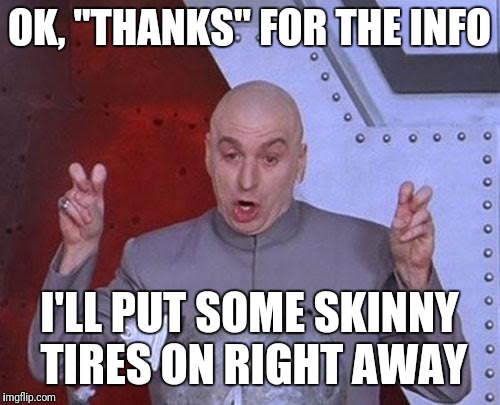 What are some good slippery narrow tires? PowderfaceTr. Wheels | Tires | Spacers | Hub -- Sponsored by The Tire Rack 38 02-07-2015 01:14 AM
