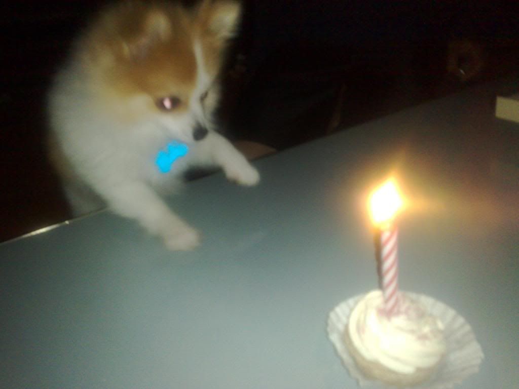 Koji's 1st Birthday! (Yes it's a doggy cupcake; pork liver cupcake I believe it was)