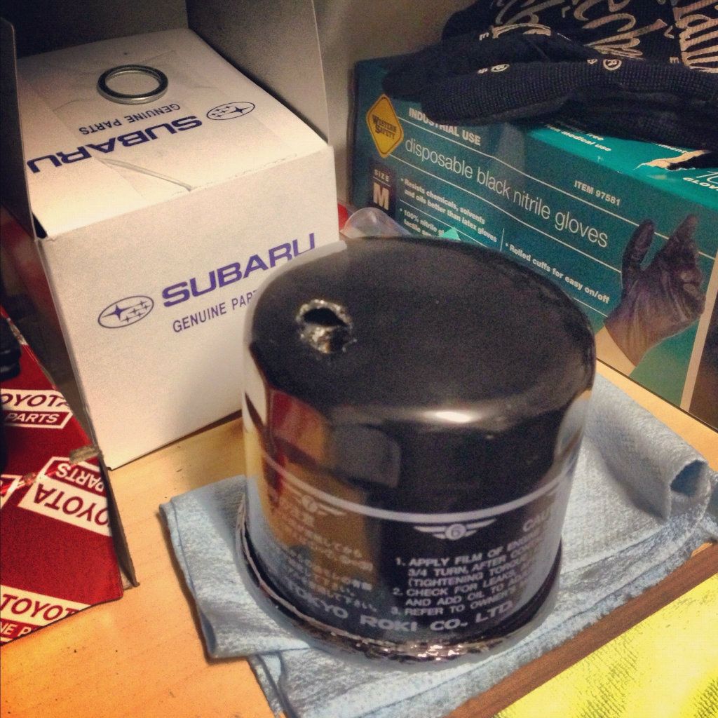 I didn't have a filter wrench, so I drilled a hole in that mutha and jammed a screwdriver into it to torque it off.