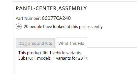 PANEL-CENTER,ASSEMBLY (66077CA200) is the part that a few have quoted to ordering for the one piece. There is another part for the same price but it's