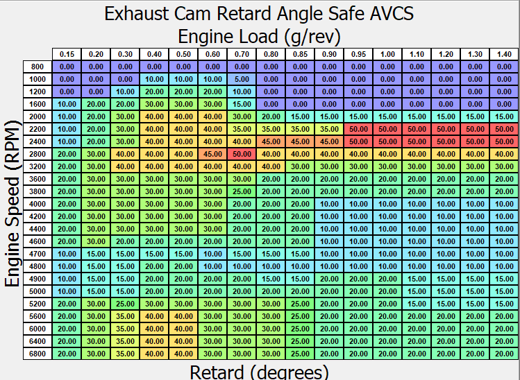 0% PI tables work fine showing Pi only at idle, sometimes, 100% DI cures every single problem I have ever had with fueling. Problems I have tried to fix with AVCS tuning. I hate PI now. It's louder, less economical, and accelerates worse than DI. I'm trying to work with AVCS timing now to get the Intake Late/Exhaust Late internal EGR working correctly. I'm not sure if I can do it with DI alone, or if I need PI to get it to work correctly. I'm just concentrating on the area from .3-.5 load, and from 1200-2000 rpms. That should boost my highway mileage.