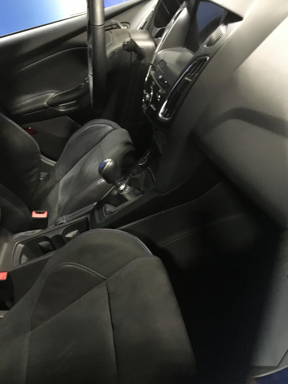 Perfect exterior color. But I'm not digging the all black interior. Maybe some blue inserts to match the brake calipers? As for the steering wheel, I agree with Packo'crows, it isn't very sporty....