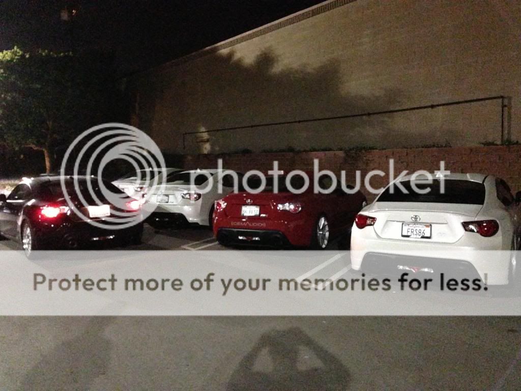 West L.A. -Stock Whiteout FR-S driving by on Culver Blvd. near the intersection of Culver and Main st. around 2:30pm, driver was a Caucasian male -Stock Whiteout FR-S in parking structure off of Cardiff (between Culver and Venice) around the same time East L.A. -Whiteout FR-S with Carbon Fiber hood (Seibon maybe?) turning from Garvey onto Garfield going south around 8:30pm -Hot Lava FR-S in the parking lot in the Hilton San Gabriel/Monterey Park off of Valley Blvd. around 9pm |