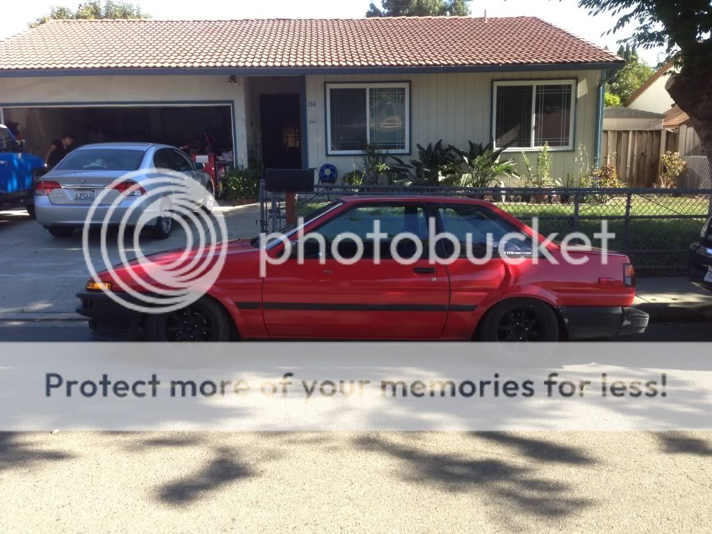 Has some QP damage, but frame's still good. Gotta change out the rear shocks coz they're blown but has 5.5k revolver springs in the rear. Gonna have to redo suspension either way. The motor's not acting right, im running hella rich and its sluggish. I got rhe car for $2k, came with some goodies though. ROLLA LIFE... i might swap the motor to a 3sge in the future.