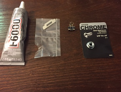 The metal piece is glued to the bottom of the damaged clip. The clip will have a rough surface and a smooth surface. Put the glue on the rough surface, wait two min and apply on the clean area (broken clip). After that clamped it down with a binder clip for 15 min to let the glue harden and your good to go.