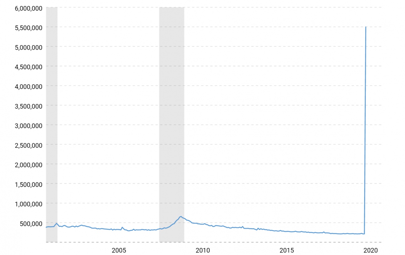 4-week average of initial unemployment claims per week. Just the US, but it's a good indicator for how much demand for new cars will plummet.