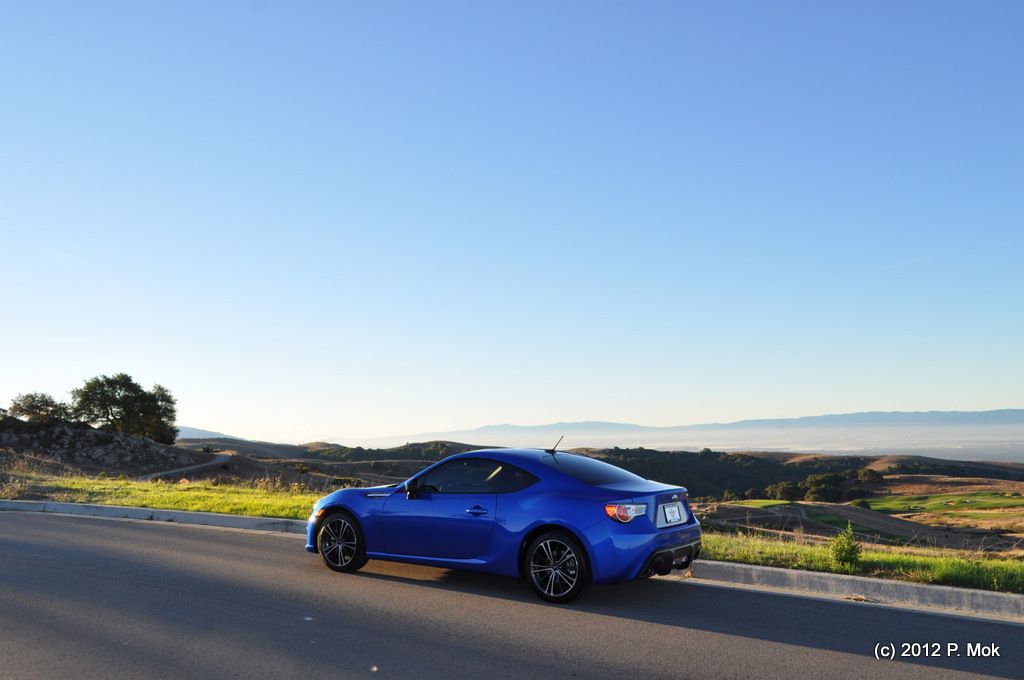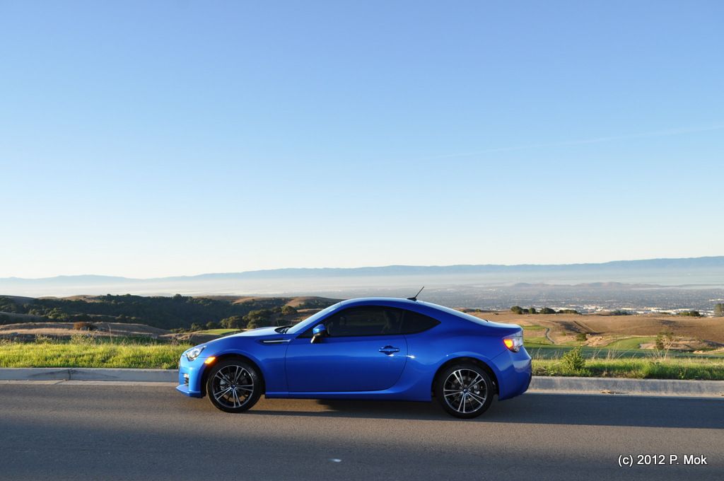 ![]() I've decided to name my BRZ Stitch, after the blue Disney character. He's blue and has a big smile. ![]() Saturday was quite a day! First of all I was approaching 1000 miles on the odometer, so I took Stitch out for a nice long drive through some of my favorite roads. Here is the odometer just as I was about to break 1000 miles. ![]() It was very hard for me to keep the motor under 4000 RPM during the break-in period. But once I passed the magical 1000 mark, it was finally time to let 'er rip! I took it down Palomares Rd, which I think of as my own personal backyard test track, and then out past the wine country vineyards of Livermore, to Mines Rd. Mines Rd is one of my most enjoyable driving routes. It goes out to the middle of nowhere and then runs up Mt. Hamilton to the Lick Observatory above San Jose. If you're an Initial D fan, Mt. Hamilton is like Bay Area's version of Akina. It's a beautiful mountain road but an incredibly twisty and challenging drive. Pretty unforgiving too -- if you make a mistake and go off the edge of the road, you're going off a cliff and down a long ways. So you have to keep it safe and sane here. I didn't switch the traction control all the way off, but did go to VSC Sport mode to have a little more fun. ![]() And oh man, what fun it was! This was my first real opportunity to see what this car is all about, rev it like it was meant to be driven, and push it a little in the corners to see just how crappy the tires are. To my surprise, they gripped the road fairly well. I like to drive with the windows down so I can hear the tires and they gave very good audible feedback. A little scrubbing sound as you start to turn in, gradually increasing in sound as you push it harder. On a few tight hairpins I got on the gas a little more aggressively at exit and got some wheelspin but as everyone has noted, nothing too dramatic and very easy to modulate. The whole package was very confidence-inspiring and I was able to drive the car harder than I did the first few times I drove my MR2 there. With an MR-layout you really have to watch for snap-oversteer if you get too aggressive, but the BRZ's FR layout is much more forgiving and predictable. The suspension soaked up most bumps very well and I found it much more comfortable to drive than my fairly harsh-riding MR2. And it offers fairly comparable levels of responsiveness and balance. I was very pleased with the performance of the car, bone stock -- so I'm not sure I even need to do much upgrading for now, if my main usage of the car is for the mountain twisties I don't want to ruin the comfort and balance it currently has. If I start heading to the track frequently, then that is another story. ![]() On the way to Mt. Hamilton I stopped by a popular rest point for bikers and cyclists -- The Junction. Got a few compliments from bikers as I rolled through, but I didn't stay long. I was having too much fun driving! When I got to the Observatory at the top of the mountain, there were no other cars there, just a few bicyclists. The view up there is fantastic on a clear day. Again, after a brief stop to take a few pictures, it was time to head back down and tear up the roads some more... ![]() Panoramic shots: Click to see fullsize. ![]() ![]() That wasn't the end of my day though. I also had to take Stitch in to get smogged, so I could register it at the DMV this week. So I stopped by my local smog test place in Hayward, the guy there is cool and we talked about the car for a while and he even snapped a pic of it after the test. Of course, Stitch passed with flying colors! ![]() Then it was back home and time to give Stitch a much-deserved bath. My wife was nice enough to help me clean the interior while I dried the exterior. ![]() Then I spent the rest of the evening applying the 3-stage Meguiar's Deep Crystal Shine system. Paint cleaner, polish, then wax. My back is a little sore and my arms a little tired, but man the shine on the car is so impressive, like a mirror. This morning I will take the car out and get some more shots of it in its oh-so-clean glory.