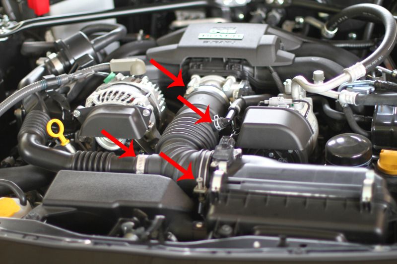 1. Disconnect the negative terminal on the battery. ![]() 2. Stock engine bay. Loosen the clamps holding the tube to the throttle body, sound changer tube, blowby hose, and airbox. ![]() 3. Take out the stock hose. ![]() ![]() ![]() 4. Put on the hoses on the HKS intake and the airbox. Screw on the nut where the blowby hose will attach to. Put the intake on, but don't tighten the screws yet. ![]() 5. Take out the stock air filter and replace with the HKS filter ![]() ![]() 6. Once you got everything set, tighten everything and reconnect the battery. Fire up your engine, and enjoy!
