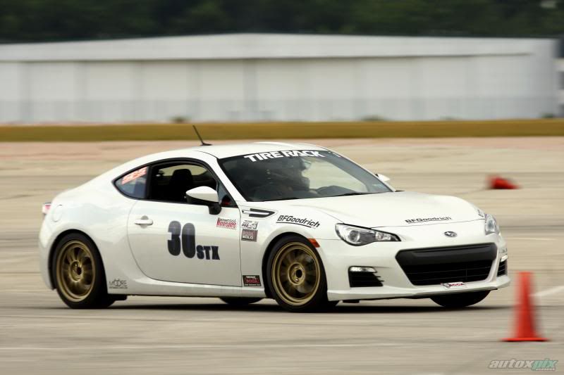 So I just got back from the Toledo ProSolo. I was hoping to place well in STX, but my dreams where shattered by much better drivers than I. As you can see: I'm Nick Kelly by the way. Wayyyy down at the bottom. http://sololive.scca.com/STX.html I was the only FRZ at in the class without either KWV3's or Ground Control coilovers. Entering a national level event on a spring and strut combo in STX is suicide. In addition to this disadvantage, I was running the stock tune. The car has only a catback exhaust and TRD intake box. All the other FRZ's had EcuTek, some even on E85. That all being said, I think the fact that my times where at least in the realm of the mid-60's (combined) was pretty cool despite the cars huge disadvantages. Koni setup: I had to fiddle with the Koni's quite a bit to get them dialed in from using the stock springs. In the end, I found that a half turn towards stiff up front and full soft in the rear was the best setup I've used so far. I'm headed to Wilmington Ohio for the national tour event this Friday and I may turn up the rear struts a hair and see if that dials out some of the understeer. Sway bar setup: Originally running the car in stock class, I had a Cusco 20mm front sway. When I added the Tarmac springs the increased rate in the rear overpowered the small front bar, so I ordered a larger 25mm adjustable hollow bar from RCE. Adjusted to the "soft" setting, the car settled back down and the results where phenominal. Locally this car has yet to be beat in STX. That being said to compete at a national level, coilovers are almost a must if you want a chance at the top 3. The spring rated the fastest guys where running had almost 100lbs on the Tarmacs. But for a lowering spring designed to work with a normal perched strut, there is no subsitute. I will add additonal impressions when I return from Wilmington Ohio's National Tour this coming weekend. Club Trials: August 25th I will be attending a Club Trial (time attack) at Pittsburgh International Race Complex in Beaver Falls, PA. Last time I was there I had stock springs and Koni's and ran a 1:12 I will provide a full track review and impression, as well as video after that event. I would recommend this spring to anyone wanting an afforadable, decently competitive setup with either Bilsteins or Koni's. The quality of these springs is unmatched to anything I have used in the past or have installed on customers cars when I worked in the industry. This is as good as it gets without coilovers. However being within seconds of the top runners at the ProSolo, I will be saving pennys, selling myself, and doing dirty things to eventually buy a set of Tarmac coilovers from RCE. *At ProSolo, I was running 245 BFG Rivals on 17x8 RPF1's. -Nick