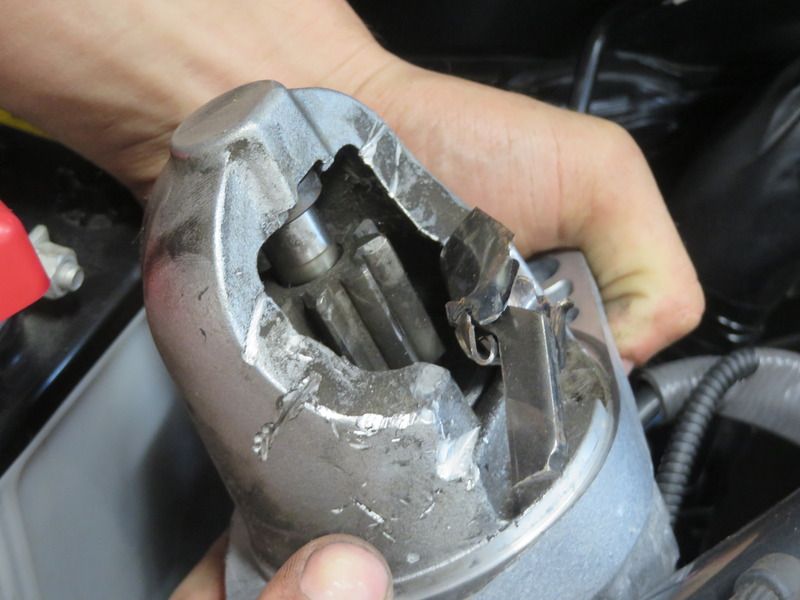 dafuq???! How does that happen to the starter? Did someone drop a screwdriver in there and have you start it? Something caught and blew up in there!