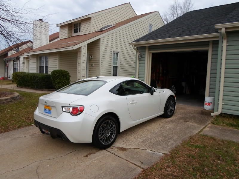 Not something I want to find out the day mounting and balancing new rubber happens. 225 is plenty fine for my uses. If I need to go wider for any reason I can always sell and go for different wheels. Thanks for the pic! I see that they rest in just about the same spot that the 11 wrx wheels do. I've been trying to visualize the gold against whiteout but no pics on the net of that exact combo on a FRS or BRZ. In case anyone was curious, here's a couple pics with the 11 wrx wheels. ![]()
