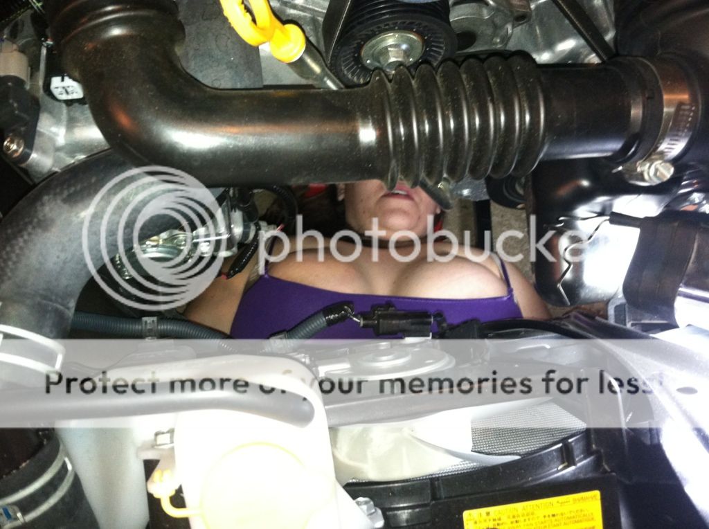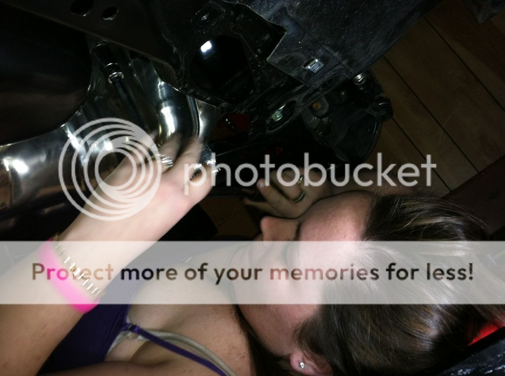 Ok guys, here is my beautiful wife removing the exhaust manifold getting ready for the headers to arrive. She loves getting her hands dirty working on the car.