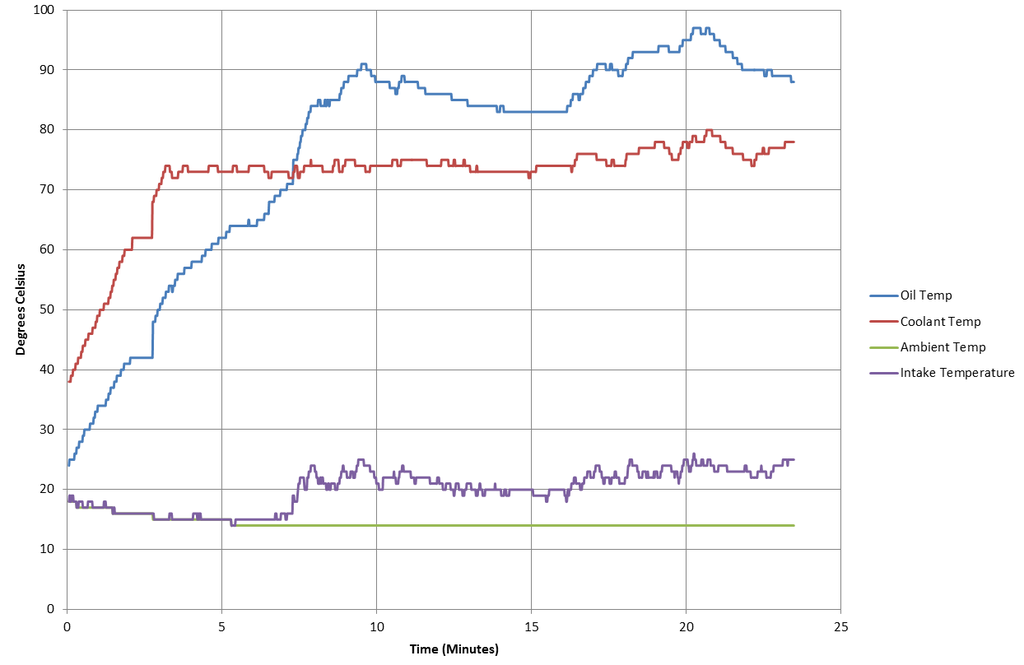 Here's a log of mine. Notice until the oil is warm (I was cruising at 40-60mph) and I started thrashing the car, the IATs pretty much track ambient temps.
