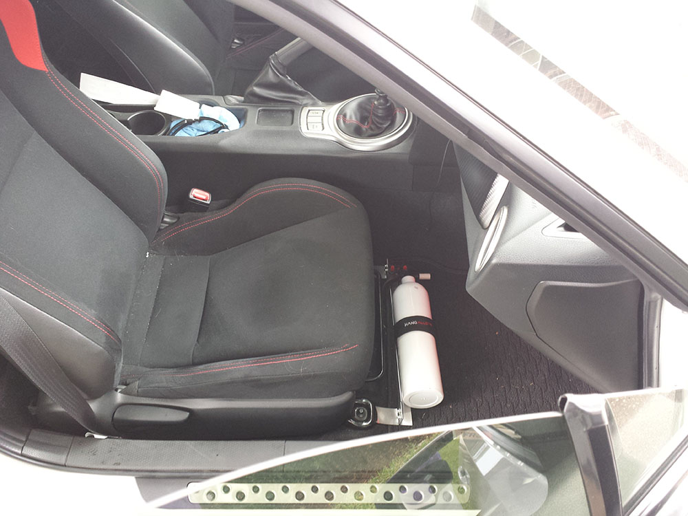With some major help from a friend made a bracket for the fire extinguisher. Going to paint it all black when it stops raining and I find time.