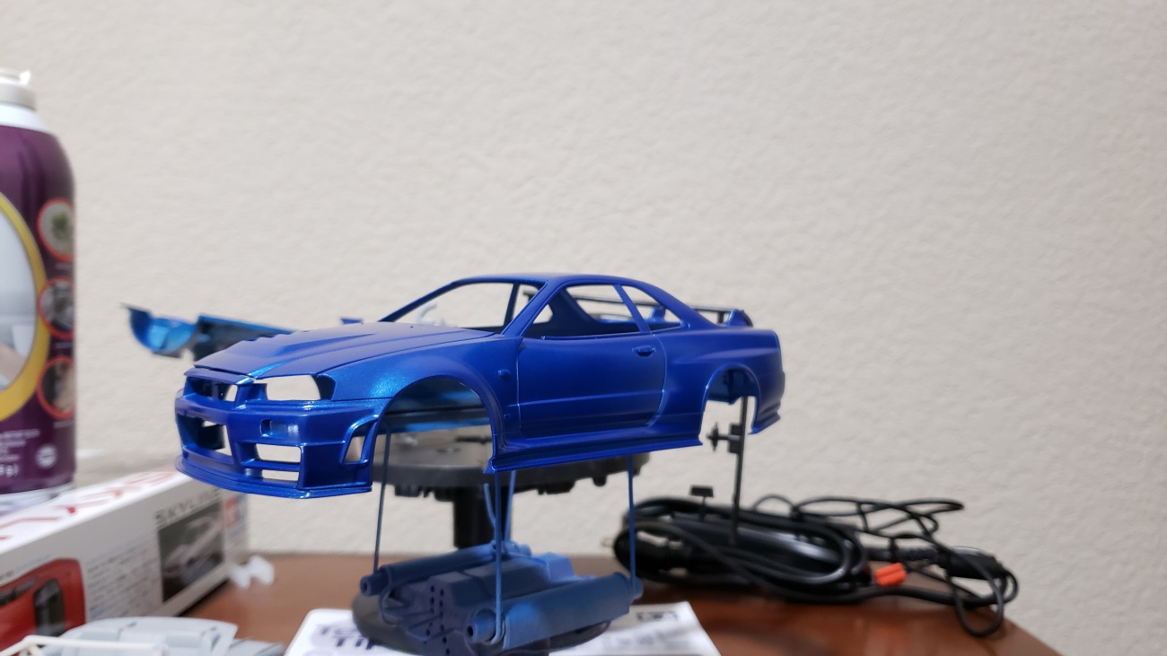 Body is not cleared yet. I'm thinking about wet sanding it after a few days, and then lay on another coat. It just has a mist coat, and a normal coat. I know people say you shouldn't wet sand mica or metallic paints, but since I'll be laying another coat, I don't see any harm.