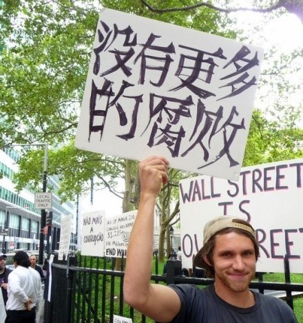 Supposedly "No more corruption", unfortunately it reads as "There isn't corruption".