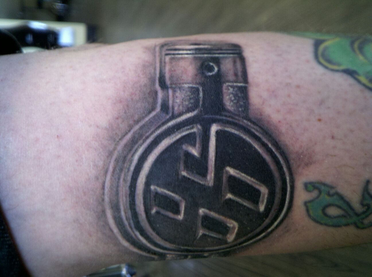 Hard to get a good shot because its pretty much on the back of my knee. Very tender spot to get a tattoo by the way! I had artist enlarge the 86 because there is so much small detail in it.