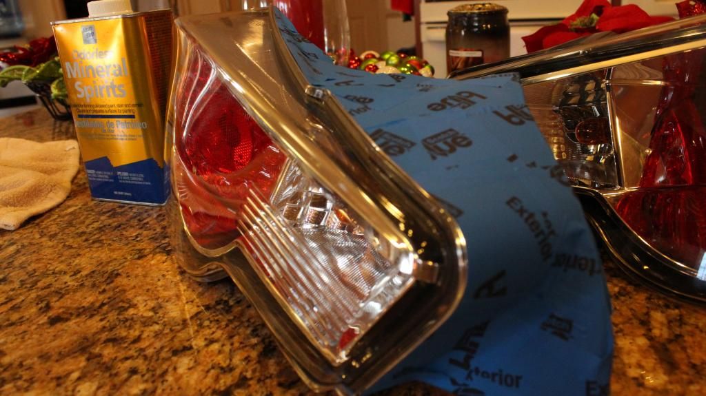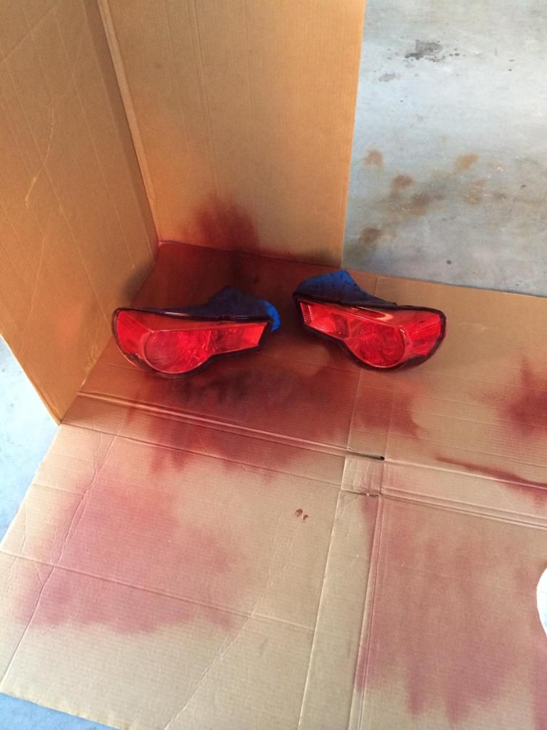 Step 1: i did was to tape it ![]() Step 2: I used mineral spirits to clean it off from any bacteria/dirt/anything bad off of the tail light. ![]() Step 3: I put it out on card board and started using VHT nite shade-red This was right after a coat or two. ![]() Step 4: I did 4 coats of the red and waited around 15-25 minutes in between each(pretty sure i should've waited longer because it's pretty cold over here) but this was right after that ![]() I'm getting 2000 grit paper tomorrow and i'll finish it up by smoothening it out (little fisheyes and etc.) and then i'll do the clear coat.