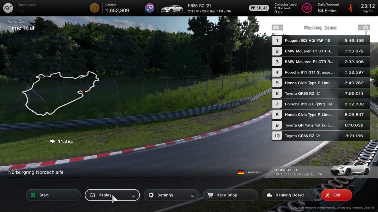 That Peugeot got my attention, 5 mins is stupid fast on that circuit. I was on the edge driving the 787B. Now I'm intrigued and want to buy it even though Im saving for the McLaren MP4-4.