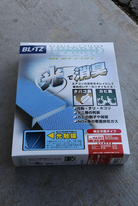 ordered this Blitz cabin air filter from Japan (pic borrowed) because of its description about how it blocks this and that and is super effective - it performs only slightly better than OEM and not really worth the trouble. Ideally I would like an activated charcoal filter to clean the air when driving behind trucks and catless cars, but the only one I know is in Australia and they don't ship to the rest of the world.
