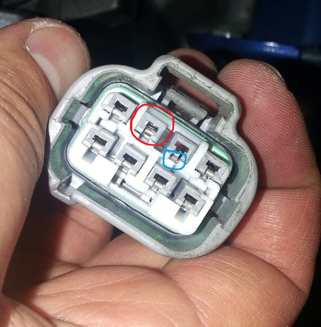 I'm not entirely happy, so I might be re-doing it. That's when I'd do a write-up. A few notes: 1) Currently, I did grab ignition-switched power from a IG2 fuse under the hood (see pic). I'm not entirely happy with that (lots of useful stuff on that fuse), I'm probably gonna re-do it with a relay, still using ig2 source to close the relay, but take power off some empty fuse slot. 2) I have a thing for preserving factory wiring. So I've spent most of my time trying to take pin #2 off factory harness and sourcing a replacement pin that would work in its place. I went to my local autoparts store and grabbed the only thing that looked remotely similar. It ended up being okay. The pin in that replacement harness is a bit narrower than OEM one and the rubber seal is too small, so I had to make sure to wrap something around that pin before plugging it into the OEM harness. 3) Now, taking the #2 pin (red circle) of OEM harness is basically my only useful contribution. The white part of the plug just pops off with a bit of effort. Then one needs to pop up the latch on the pin (blue circle) and push the pin out of the plug. The mechanism is the same as in the parts-store plug, so take the pin off that plug first to practice. |