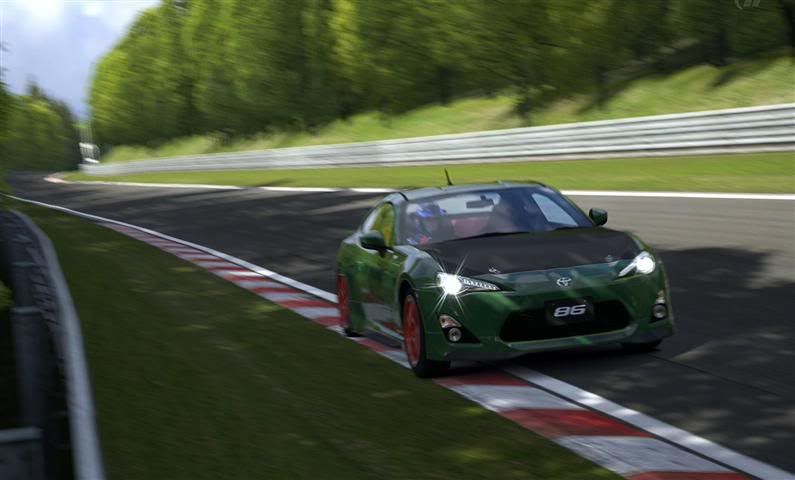 Added 3 fresh new times from me, and one from atledreier (posted here) Stock car - 410pp - comfort medium 1.) 8.33.120 - RaceR - GT86 - G25 2.) 8.33.292 - Squatch86 - GT86 - Dualshock 3.) Stock car - 410pp - comfort soft 1.) 8.21.884 - RaceR - GT86 - G25 2.) 3.) Stock car - no pp limit (413pp max)- Sport hard 1.) 8.11.633 - RaceR - GT86 - G25 2.) 8:11.841 - Michel - GT86- G25 3.) 8.12.665 - Kiwi - GT86 - DS3 4.) 8:18.383 - Dragonitti - GT86 - DS3 5.) 8:18.742 - Lynk26 - GT86- G25 6.) 8.21.788 - Autogyro - GT86- DS3 7.) 8.26.xxx - turboman - GT86- ? 8.) 8.27.378 - Kamus - GT86- ? 9. ) 8:28.201 - Redliner - GT86- DS3 10.) 8:28.429 - Andre82 - GT86 - Fanatec Porsche 911 Turbo S 11.) 8:31.689 - Slick - GT86 - ? 12.) 8:33.364 - 4agze - GT86- DS3 13.) 8:34.470 - bryan - GT86- DS3 14.) 8:35.936 - MF_DEUCE - GT86- G25 15.) 8:36.087 - atledreier - GT86 - ? 16.) 8:39.057 - Zarwolf - GT86- DS3 17.) 8:49.721 - MrVito - GT86- DS3 ![]() ![]() And some extra pictures from a fully tuned 86. British Racing green. Tried a high front setup. It was ok, but I think my pink car with a normal setup is faster.. ![]()