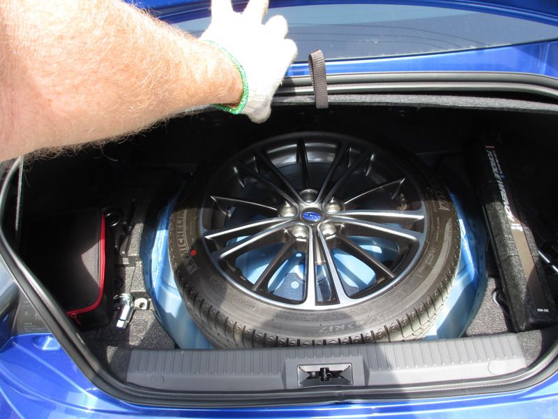 Put the wheels on today. 18x8 Sparcos with Advan tires. If I had taken delivery before I bought the wheel set, with the STI aero the stock wheels were passable and wouldn't have ordered the new ones. I did order them, though, they were a nice chunk of change and they don't fit any of my other cars so they had to be used.