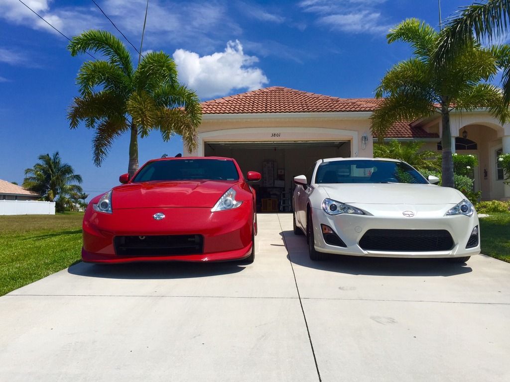 Newbie here, thank you for accepting me into the forum, hope to meet fellow FRS/BRZ enthusiast and share experiences/knowledge. Love this car, extremely nimble, lightweight, quick get up, nice interior. First mod is going to be an oil change and an extreme detail. This is the wifey's DD but she wants me to do the full mock up on her. Here she is parked next to my Nizzy.