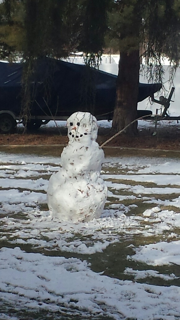 He lost an eye, and a couple teeth, so my son went out and did a Chuck Norris on it. Snowman guts and blood everywhere.