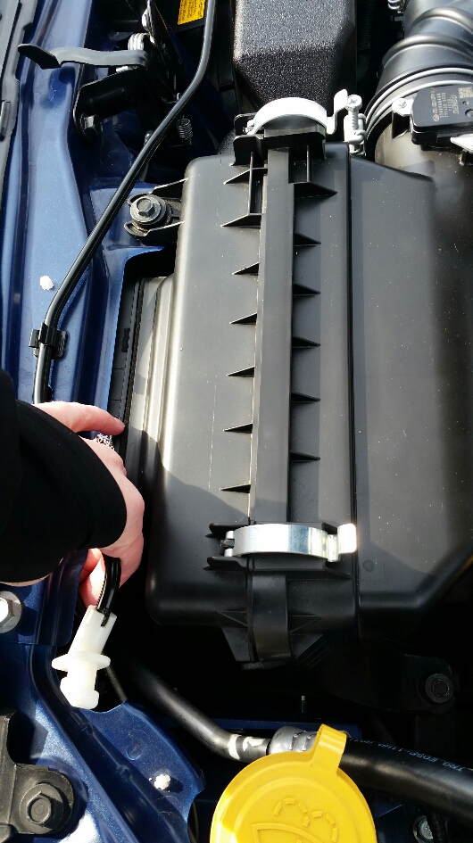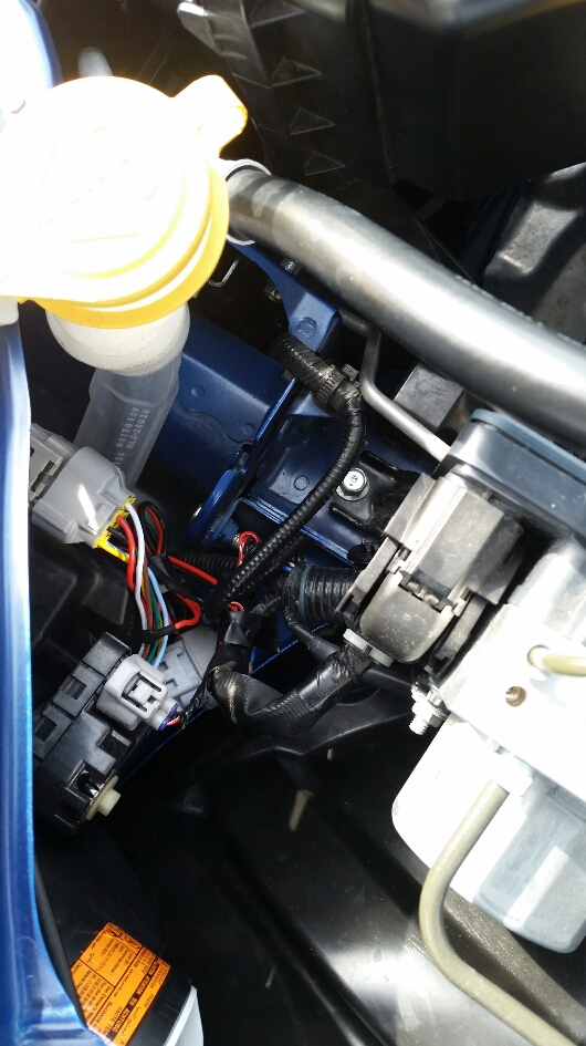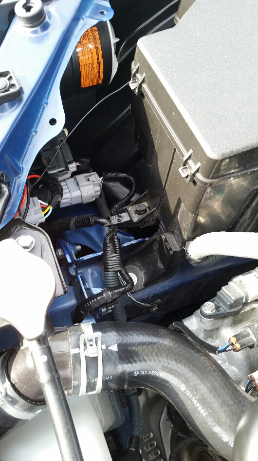 I tried to snap a few this morning but wind chill was like 10* and I'm working so had to edit on my phone. Hope you can kinda see. It's tucked completely up under the front edge behind the truck release and airbox--in the pics with my hand my fingers are touching the wire. I can try and get better pics when it's not so cold.