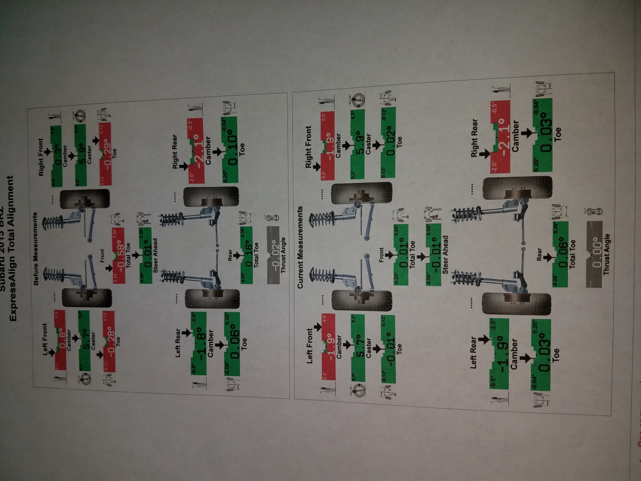 That's the max negative camber I could get using stock top hats, setting this car up almost exactly like the Chin BRZ that Randy Pobst raved about. I can always add more with camber plates if I need to. |