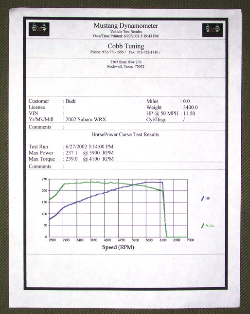 ![]() ![]() 2.0L, open deck, full exhaust, one cat, silicone(!) intercooler y-pipe, stock airbox, stock air filter, non variable cam anything, 93 octane, Unichip(!!!) Sure, power drops off pretty quickly after 6000rpm. That's the compromise of a small, responsive turbocharger. Oh, and speaking of responsive, this tiny turbocharger produces positive boost at 2000rpm. I can just tip in with throttle in any gear and the motor is in boost, even in top gear. During a long road trip where the gas is anywhere from 93 down to 90 octane, it averaged 36mpg - in a 3200lb car. Before anyone says this is a noobie kit or that it only appeals to folks who have never driven a "real" car, or that this is under-engineered, this thing was very fun on the street and great at auto-x. I wouldn't say that this is the only power curve that is good, so let's not claim that only our poop doesn't stink. The keen-eyed may notice that we stopped the dyno pull short of 7000rpm. Beyond 6750, there was very bad spark breakup. We changed everything we can and it came down to the lightweight non dampened pulley. We swapped the stock one back and no breakup. Swapped a different lightweight one, and breakup. So....at least on a 2002-2003 WRX, I'd say no lightweight pulley. So a modern motor with direct injection and full control of valve lift and timing should be far, far better than what I had right? Right? -budi |