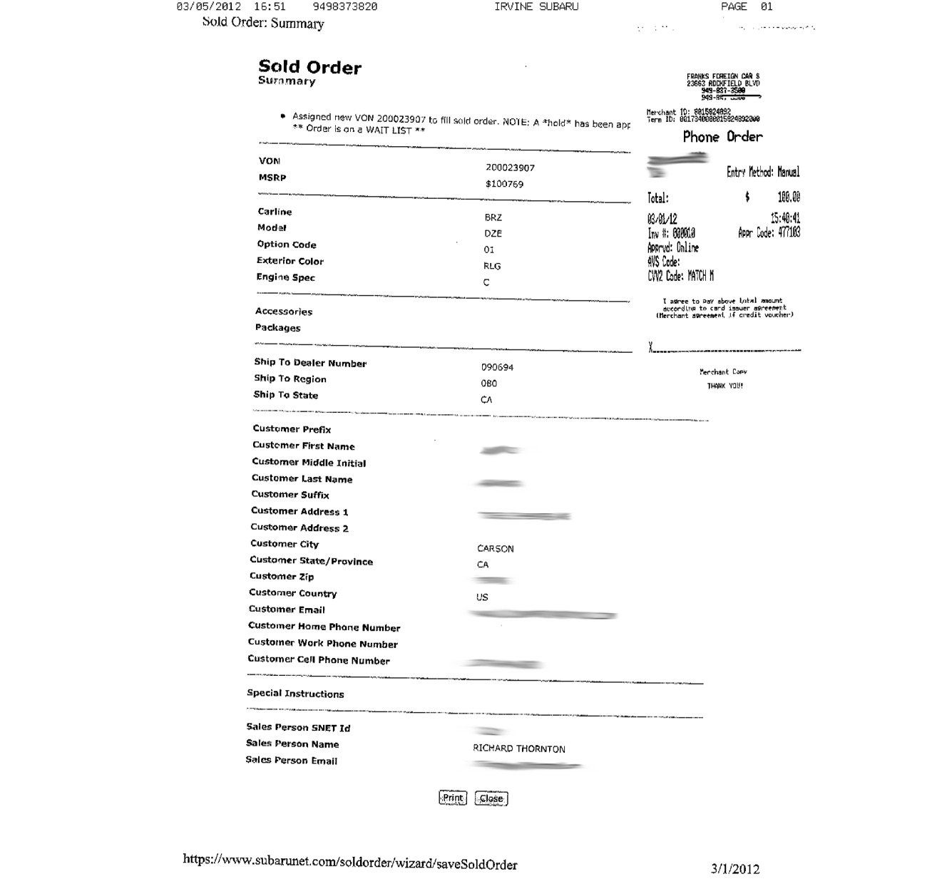so what are you trying to get from the dealership now sir? a print out of what?