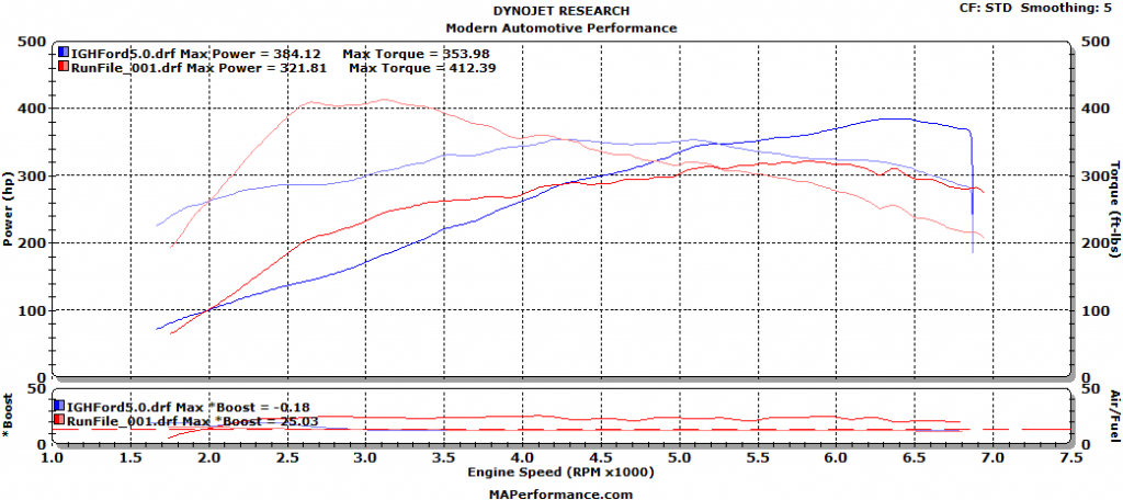Forgot to throw this in here. This is the Cobb stage 2 tune 93 oct vs our custom tune.
