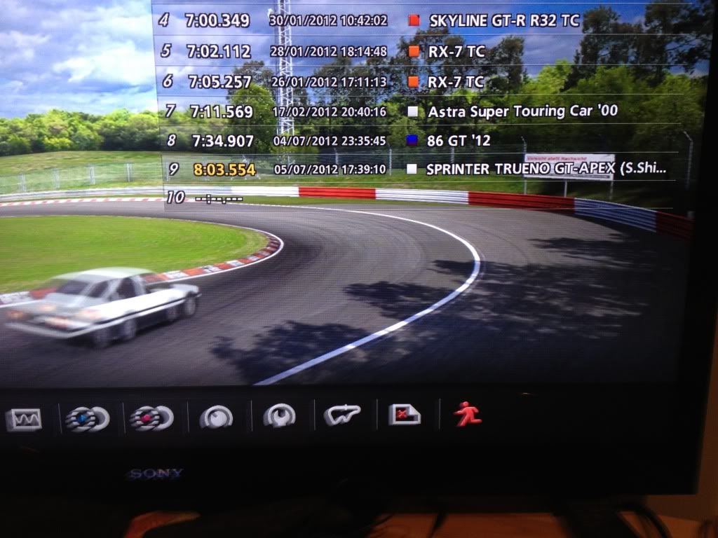 http://www.ft86club.com/forums/showt...rdschleife+gt5 Been so long since I have played GT5, or played on the PS3 in general. But im pretty sure i did a low 8.11, if not a high 8.10 not so long after that thread died.. Gotta love the Nordschleife