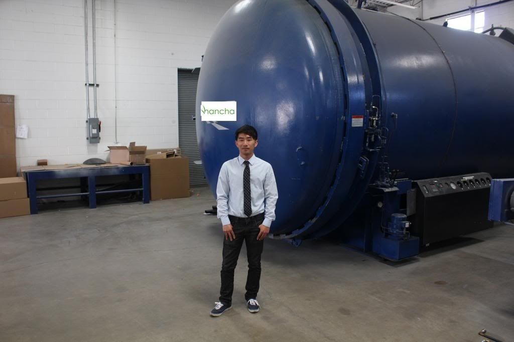 Me and their big autoclave (I'm about 5'6" or 167 cm for reference)