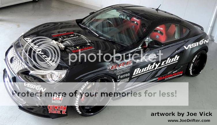 Just want to make you all aware that we will be working closely with Buddy Club USA this year as one of our top sponsors. They have really shown an awesome level of support we look forward to running the Buddy Club brand to include their race spec coilovers, 4 piston monoblock calipers and full wide body kit. We again would like to thanks Magnuson Superchargers and everyone over there for helping us with the awesome TVS2300 supercharger that is really going to take our power levels into orbit! www.Magnacharger.com BRE Motorsports in Concord, NC is building us a rock solid LS3 416 cid forged motor that is going to rock the house! www.BREMotorsports.com Cutworm Engineering in Hayesville, NC has done all the chasis modifications and awesome cagework. www.CutwormSpecialties.com FIGS Engineering in Wheatridge, CO has developed an awesome Pro Angle kit specifically for this car www.ShopFigs.com Here is just a preview of one of our renderings Thanks for viewing, Joe Vick