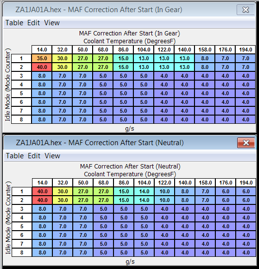 Or are talking about these tables (referenced by coolant temp and idle mode)