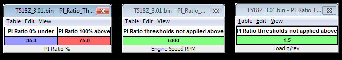 Seems like it does. Just looked over 2 logs from the last few days having set the whole PI Ratio table to 25%. On the standard table I get no PI until over 1.5 load, on the ECUtek custom map I have PI just off idle, where the minimum IPW threshold is met.