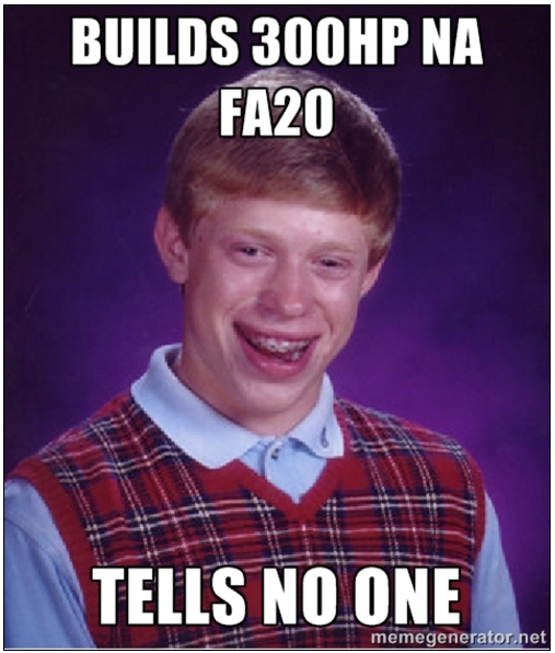 Some People get on here and blame everyone but themselves for there blown motor its sad some don't take responsibility for being cheap and rolling the dice. What's even sadder is the clique rolling over and trying to defend it. Their are new people on here everyday looking for answers and advice. Some are thankful some want to argue it's simple show me where I'm wrong. I can admit when I'm wrong but no one has came forth with data and tried it. They just think people should believe them on merit. Doesn't work that way. At least I show where I'm coming from in the original post. I have raced some of the fastest FRS/BRZ out there on a N/A motor 1/4 mile. And no one is even close to me here in the USA to this moment. The fastest people N/A are From P.R. and its only a 1/10th of a second faster than me. I've have put in my work no one can deny that. I spent countless hours of research building the FA20 I helped redesign a set of sleeves that are made by L.A Sleeve. No one on this forum knew anything about or at least didn't post about the longer valves in late model engines, GSC didn't even know about and made me a custom set and put them into production. And don't even mention any other valvetrain companies because I checked and they didn't make them either so I waited .Pushed 644hp at 29PSI and 521tq I believe. (dyno sheet not in front of me) And now I'm working on 2 new products for the FA20 to make 35 or more psi of boost and live. All these people on here talking smack need to put up or shut up because running your mouth and not bringing anything to the table is lame!! So bottom line is you don't have to agree with my opinion and what I think is safe go ahead and push the stock rods but don't blame the tuners for your mistake. Go ahead believe in the 300hp N/A Unicorn motor that no one has seen but please explain why you would run F/I if the same results can be gotten N/A. Toyarzee I applaud you for your well written and well received message thank you. I will gladly help you anyway I can.