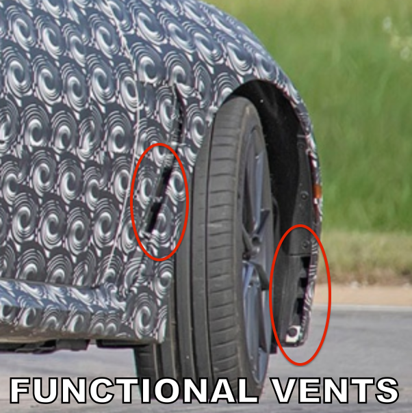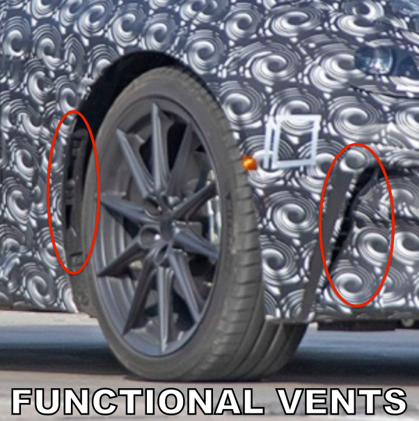 This link from BMW shows how similar vents work on their cars. Looks like both vents are probably meant to reduce drag. I imagine they could potentially help cool brakes too.