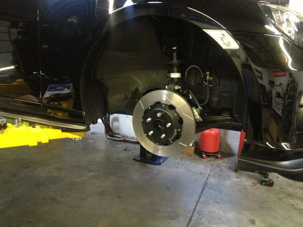 I got a good deal on a brake kit for the fronts from a forum member who wasn't able to use them because of his class requirements. They are actually for the WRX 03+ with the caliper brackets for the 08+ which fit on the BRZ. They are only the 4-pot calipers and the rotor diameter is only 12" (compared to the stock 11.5"). However, they shave 16lbs per corner. There was one exception to this kit, the bolts supplied don't work with the bracket, you'd have to order the 08+ specific bolts (the kit came with the rotors, etc). The Part# is 230-10425 (I will update after I get them on to confirm, also ordered #230-10646) for those interested. I will review after I get the new bolts in and get them put on, but here are a few pics: Kit part #140-9193 ![]() The kit: ![]() ![]() ![]() - Install turned test-fit: