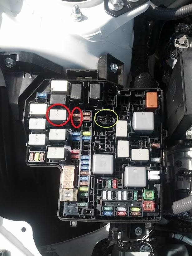 A big thanks for this tip. I just installed the LED DRLs in my FR-S (the ones that go where the fog lights would be) and wanted to turn off the factory DRLs without a trip to the dealer or having to disassemble the car. Your tip worked perfectly...opened the panel, unplugged the cable, taped it up and put the panel back. High beams still work as expected but no DRLs and only a few minutes to do it, no tools required! Thanks!!! -Gary. |