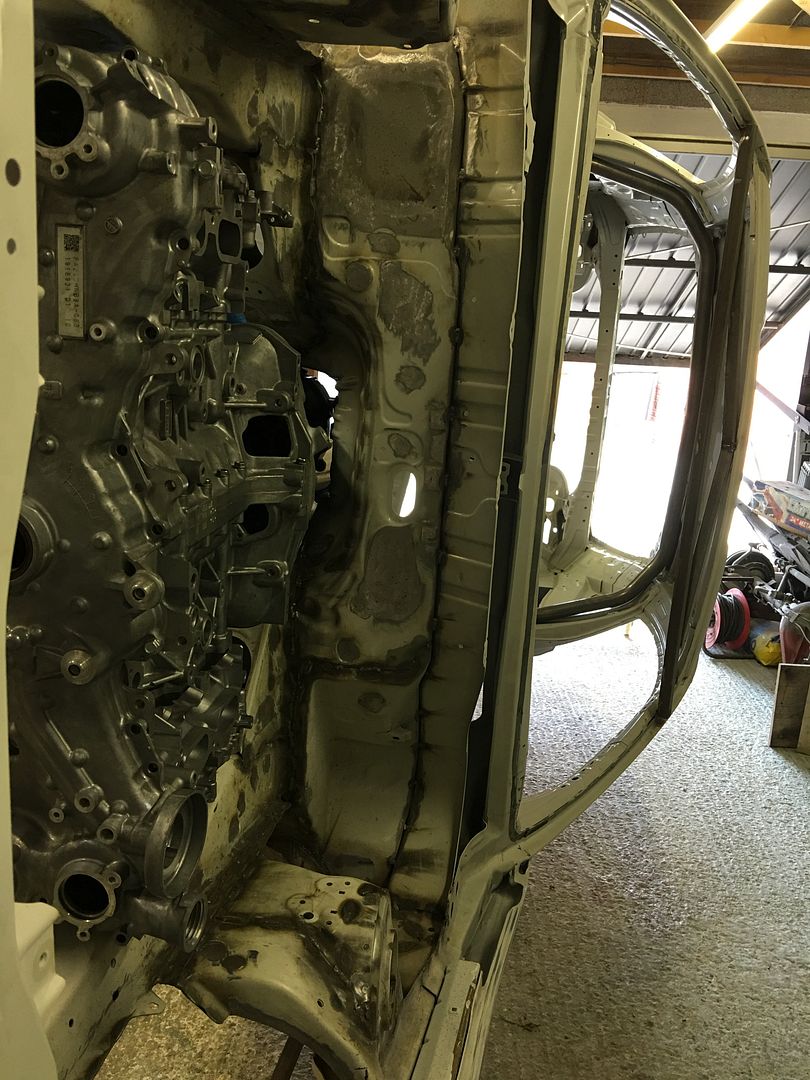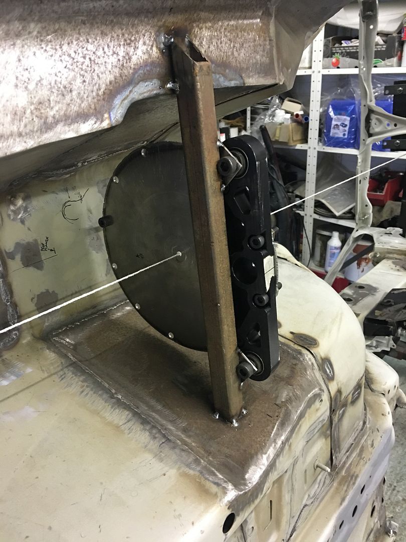 Here we go, I've made the dummy back plate of the Samsonas 'box so I can bolt the standard mount to it then bolt that to the dummy X member I tacked in last week. Now I will tack the dummy back plate to the body then cut away the dummy X member and make proper mounts that fit the dummy back plate.